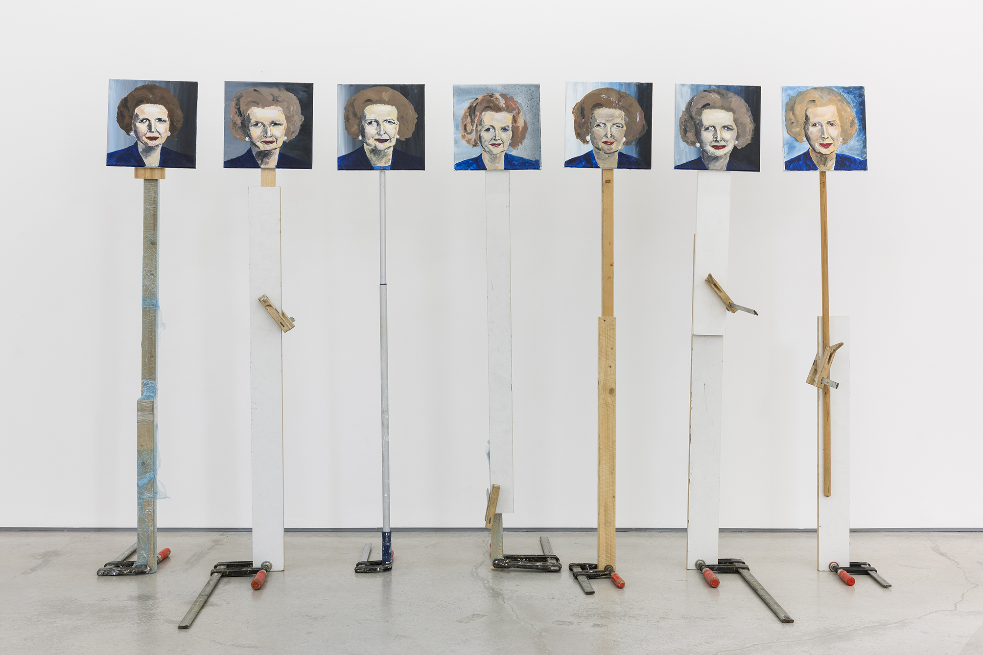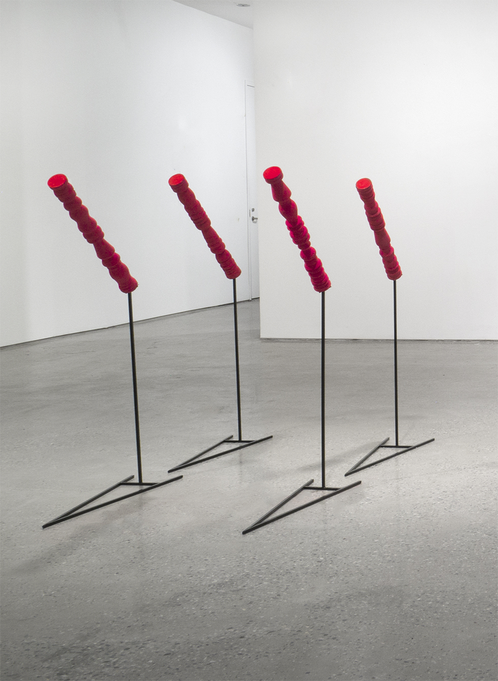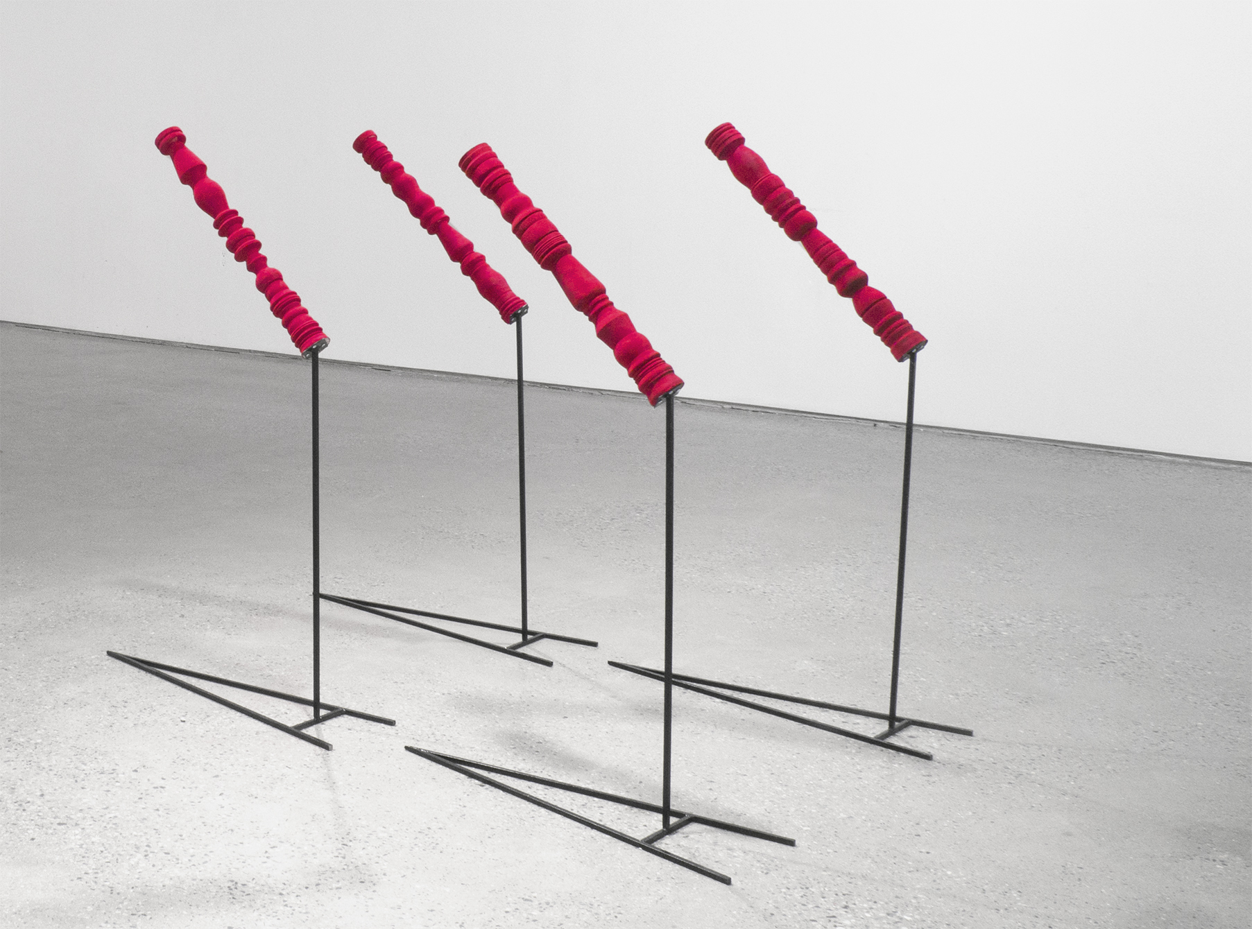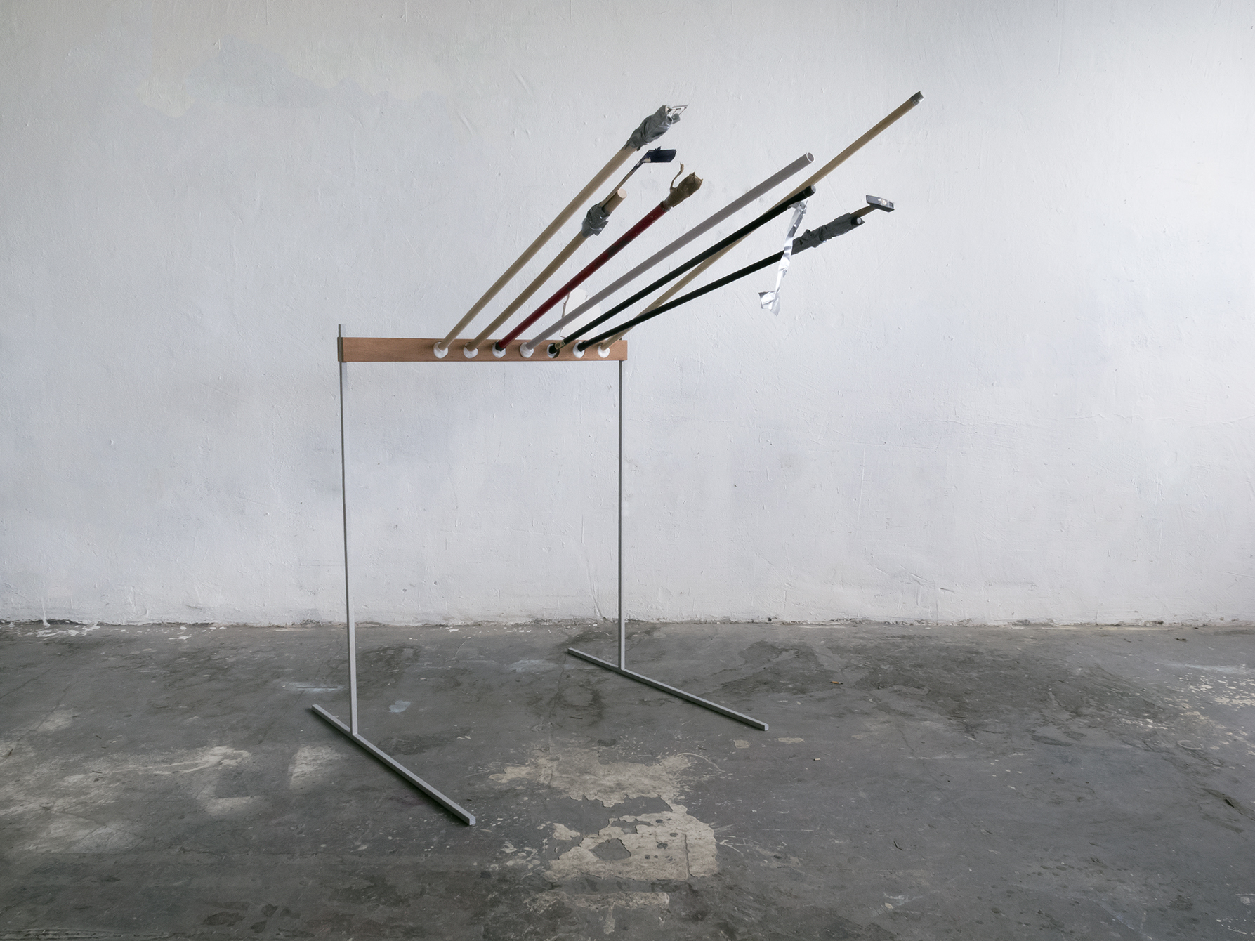 Acrylic on canvas, wood, MDF, plastic, broomsticks, painting poles, clamps