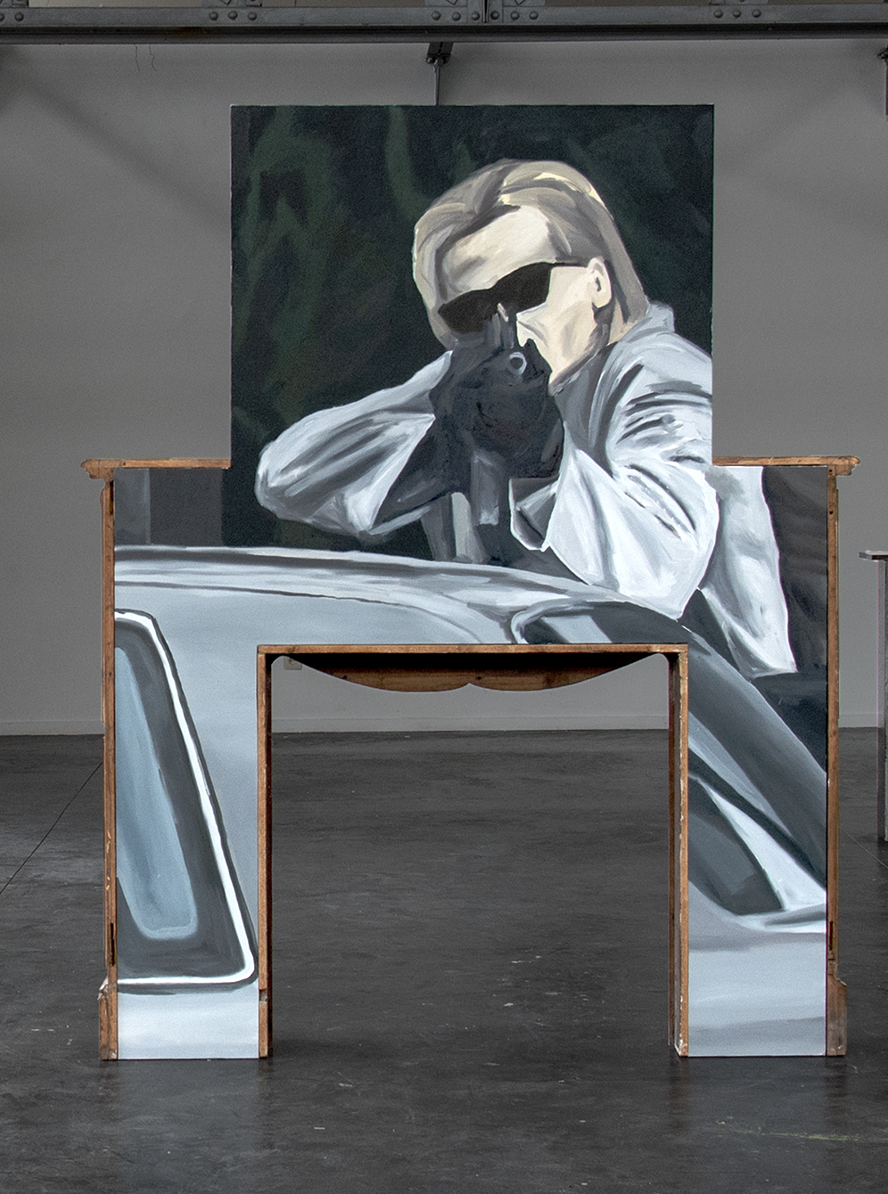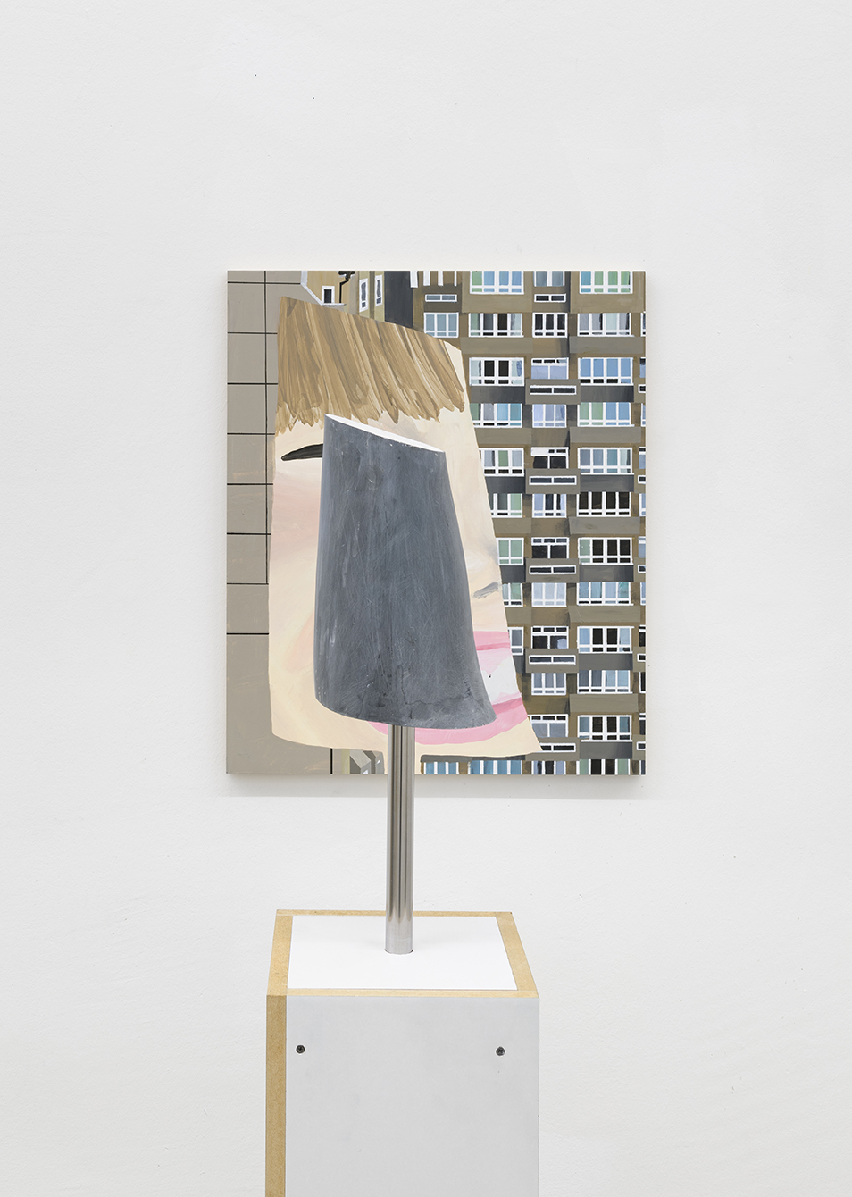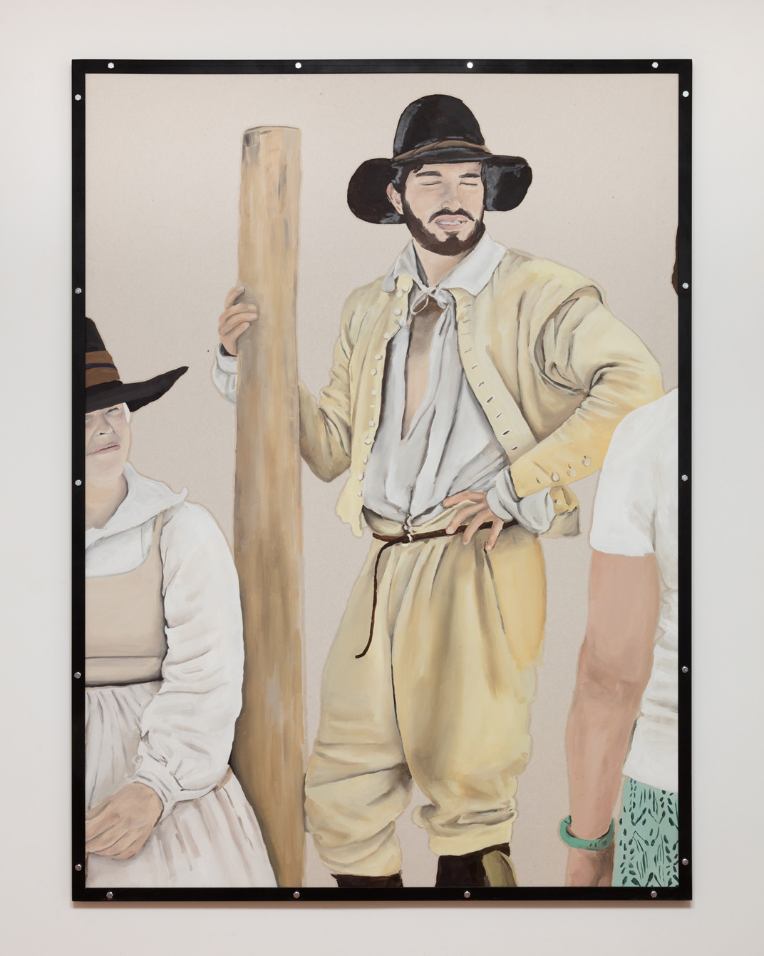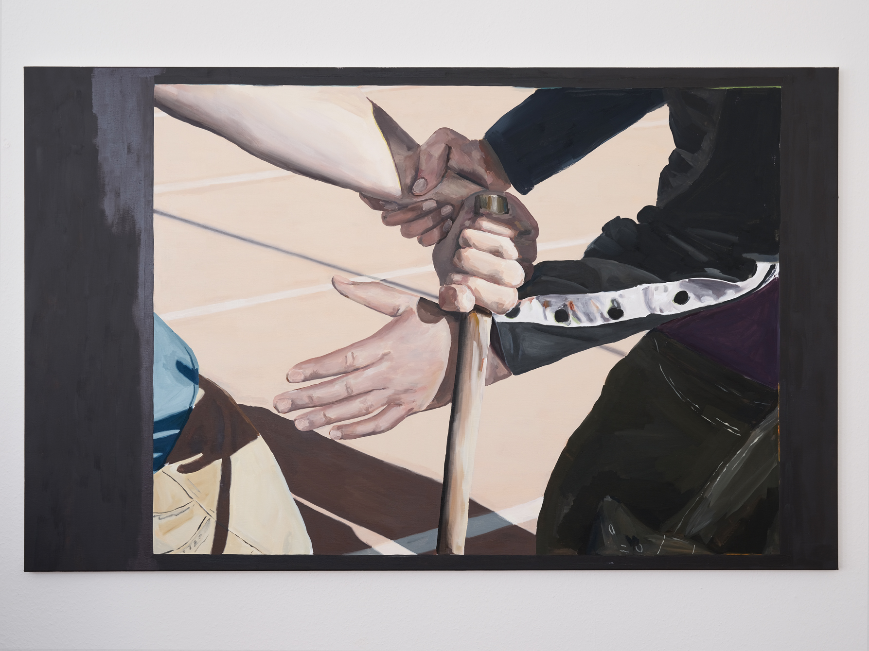 Acrylic on canvas, wood, MDF, plastic, broomsticks, painting poles, clamps